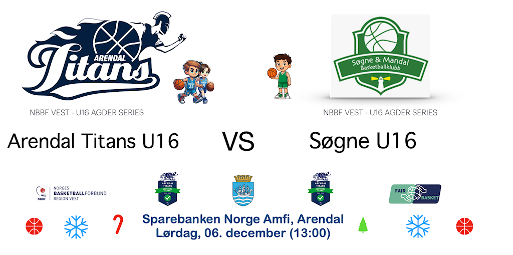 Dette blir vårt U16-lags femte kamp i NBBF Vest-Agder-serien (av totalt ni). Det er allerede andre møte med Søgne i år; for to uker siden reiste laget til Tangvall i Mandal og sikret en klar borteseier med 54-91. Nå er målet å beskytte den ubeseirede sesongen (4 seire, 0 tap) også på hjemmebane, og gå mot juleferien med full fart fremover.