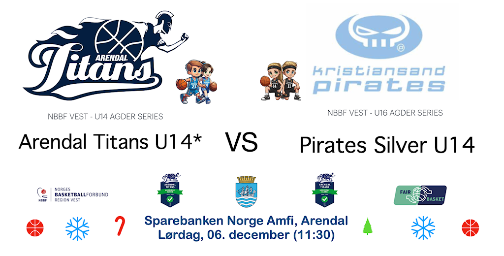 Etter to tøffe tap mot lag fra Kristiansand Pirates, hvor skader og andre omstendigheter har spilt inn, er U14-laget skikkelig klare for å snu trenden. Laget har jobbet hardt og er klare til å gå inn i juleferien og avslutte 2025 med en knallseier! Inviter familie, venner og bekjente til å bli med og heie på våre unge titaner.