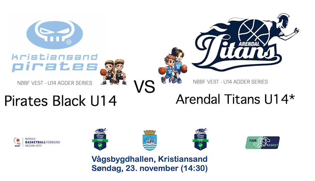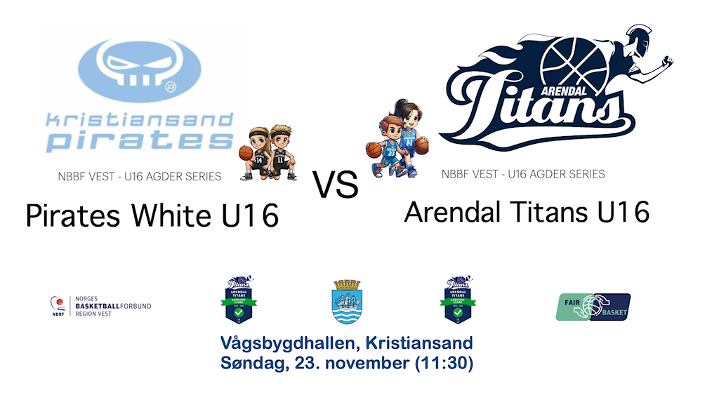 Vårt U16-lag spiller sin andre kamp mot Kristiansand Pirates Hvite U16. Den første kampen mellom lagene endte med en klar seier på 68-33 til Titans.