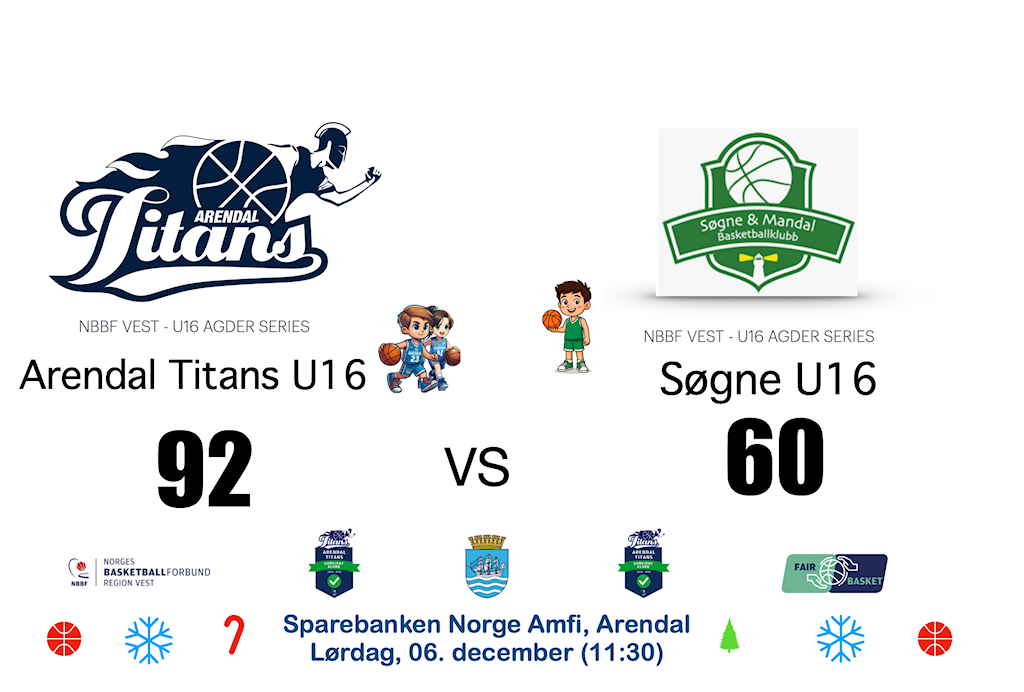 U16-lagets voldsomme angrepsspill ble for mye for Søgne å håndtere. Titans tok kontrollen fra første minutt og styrte kampen helt fram til en sluttresultat på 92-60.